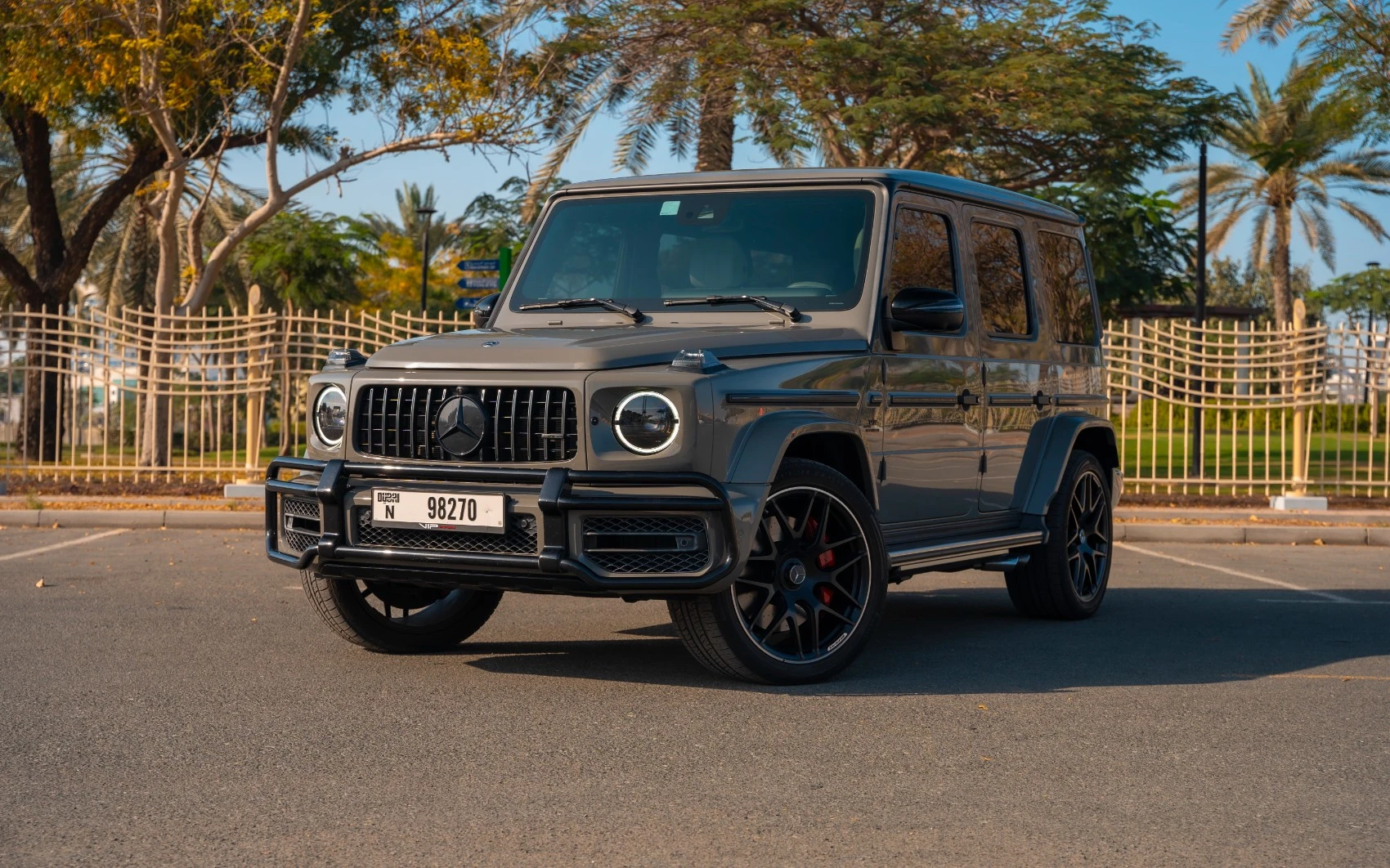 We pride ourselves on offering competitive rates in the market. While the exact AED 1418 can vary based on season and availability, we consistently strive to offer the best deals for the Nardo grey Mercedes Mercedes G63 AMG in Dubai.